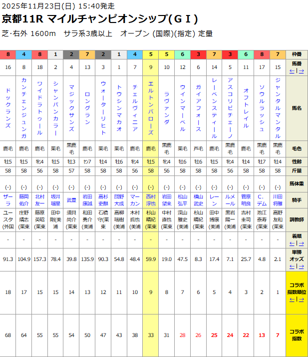 コラボ@指数重賞予想「マイルチャンピオンシップ(G1)」