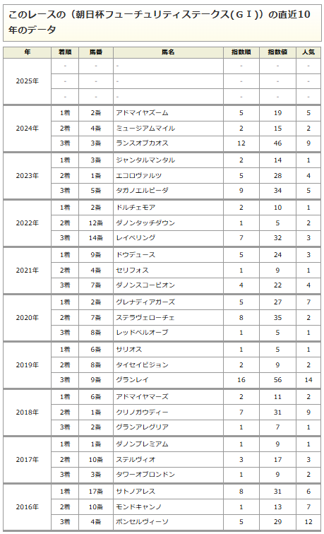 では次に過去の朝日杯フューチュリティS(G1)の結果を見てみましょう。