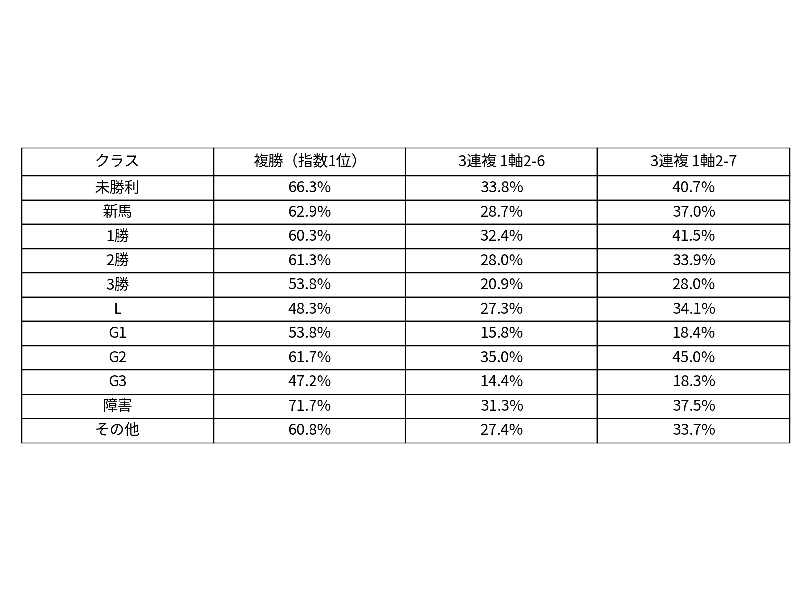 ・複勝は低くても50%弱、