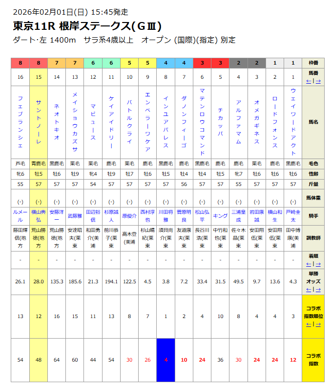 根岸ステークス(G3)のコラボ@指数】