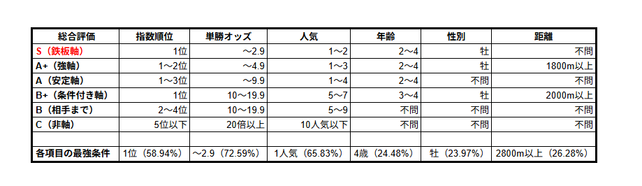 上に行くほど軸馬におすすめな条件なので、