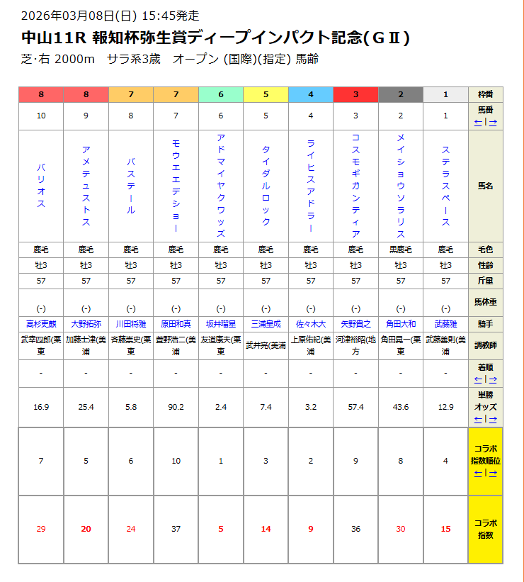 弥生賞ディープインパクト記念(GⅡ)のコラボ@指数】