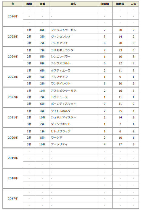 【弥生賞ディープインパクト記念(GⅡ)の直近データ】過去の同レースの指数成績を見ていきましょう。